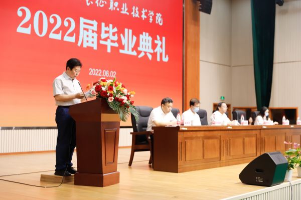6月2日上午,浙江长征职业技术学院2022届毕业生毕业典礼在综合楼第二报告厅隆重举行。受疫情影响,本次典礼采用线下线上结合云典礼形式。学校党委书记、常务副院长王其军,副院长杜宝山,副院长许迈进,党委副书记、纪委书记张乐弟,副院长高创宽,党委副书记吴有恩出席了典礼。各二级学院院长、党总支书记,各职能部门负责人,毕业班辅导员、教师及学生代表共同见证2022届毕业生圆满完成学业,开启人生新征程。2022届毕业生通过视频直播的形式参加典礼。吴有恩主持毕业典礼。
