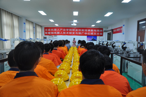 9月8日,浙江长征职业技术学院与杭州龙盛工贸有限公司(以下简称:杭州龙盛)共同举办的龙盛机器人产业学院职业技能培训基地揭牌暨磨抛机器人技术研发与推广中心成立大会在学校实训楼西109室举行。学校党委书记、常务副校长王其军、副校长杜宝山及杭州龙盛董事长金忠豪、总经理钱浩亮及师生员工代表参加了大会,共同见证这一重要时刻。大会由智能技术学院党总支副书记余泓主持。