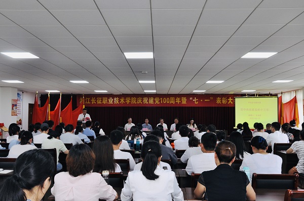 6月17日下午,我校在党员之家隆重举行了庆祝建党100周年暨“七·一”表彰大会。校党委书记、常务副院长王其军,副院长杜宝山,副院长许迈进,党委副书记、纪委书记张乐弟,副院长高创宽,党委副书记吴有恩等领导出席会议,各党总支书记、师生党员代表、受表彰的党员和先进基层党组织代表等参加了会议,会议由党委副书记、纪委书记张乐弟主持。