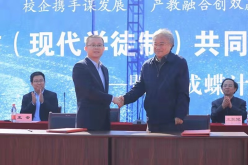 会上,校企双方签署了合作协议书;也进行了人才培养基地,实习就业基地以及吉利学徒班授牌仪式,还授予了现代学徒制班大旗,意味着校企携手谋发展,产教融合创双赢。