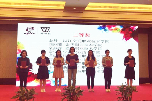 第八届“外教社杯”全国高校外语教学大赛(职业院校组)浙江赛区比赛于2017年5月16-20日在浙江旅游职业学院进行。全省共有24所高职院校的英语教师参加了本次比赛。我院应用语言系公共外语教研室王秋老师代表我院参加了本次比赛并取得了二等奖的优异成绩。
