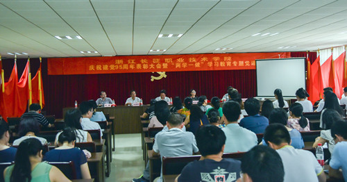 2016年6月22日下午,浙江长征职业技术学院建党95周年表彰大会暨“两学一做”学习教育专题党课在学院党员之家隆重举行,学院副院长杜宝山、副院长党委副书记王其军、工会主席洪骏、党委副书记张乐弟以及2015年度先进基层党组织、优秀共产党员和优秀党务工作者代表、新党员代表以及部分教职工党员近100人参加了会议,会议由工会主席洪骏主持。