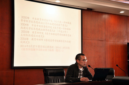 为深入学习贯彻习近平总书记在北师大的讲话精神,着力加强我院思政管理干部的师德师风建设,学生处于2015年3月12日至13日特别举办了以“辅导员基本素养及行为示范”为主题的第三期思政管理干部培训班,学生处和团委全体、各系党总支书记及全体辅导员、班主任均参加了本次培训。