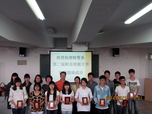 2014年5月15日下午12:30在一号教学楼1218教室,由财务管理系举办的“浙江长征职业技术学院第二届财会技能大赛”正式闭幕。参加本次闭幕式老师有财务管理系副主任何光平老师、财务管理系党总支副书记徐静老师、技能大赛指导老师胡静波和财管系辅导员翁文亮老师。此次大赛的宗旨在于培养学生的兴趣爱好,提高学生的专业技能,提升学生的专业素质。