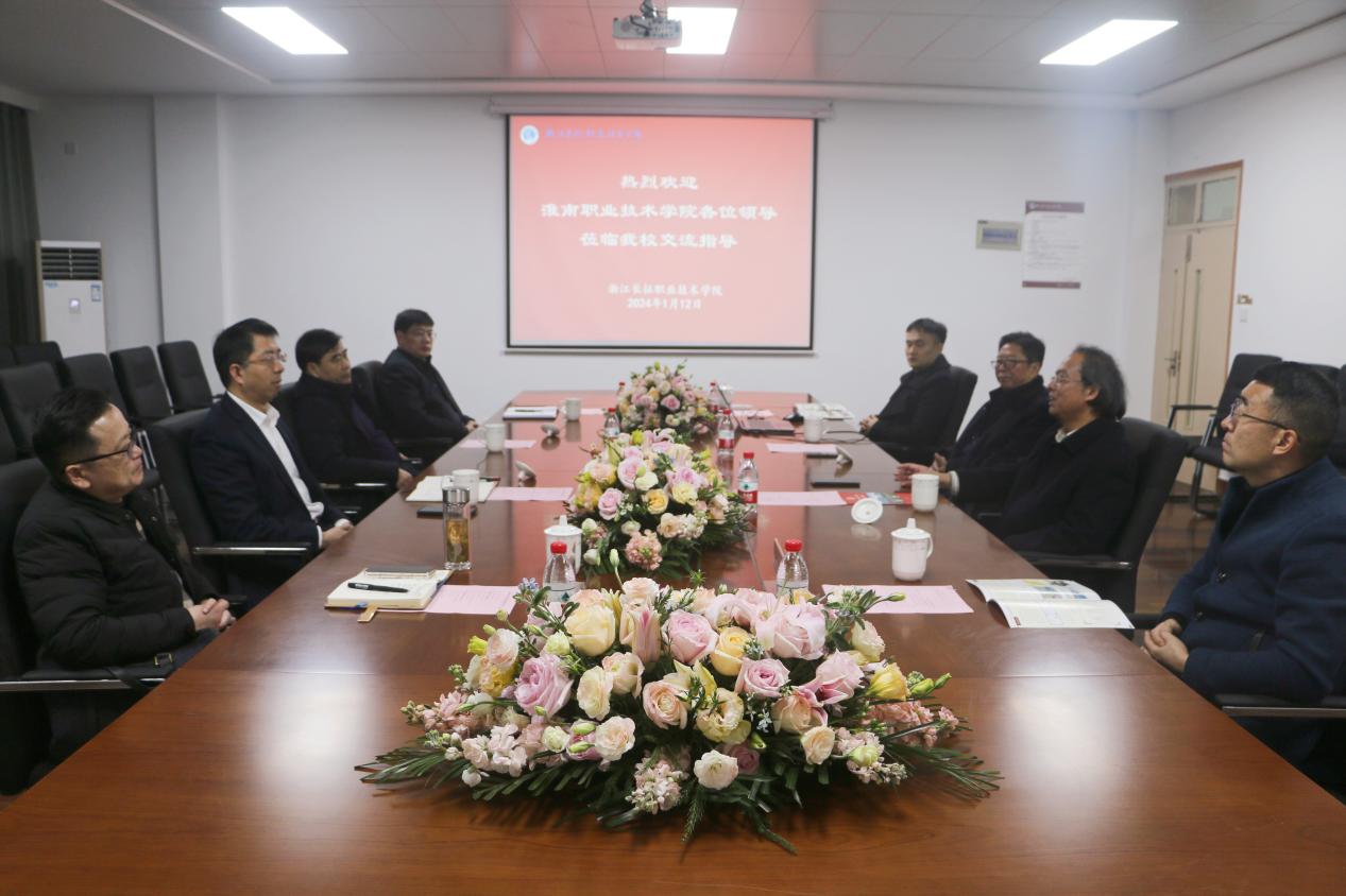 袁爱清首先对我校的热情接待表示感谢,并从学科门类、专业特色、人才培养等方面向与会人员简要介绍了淮南职业技术学院的整体发展情况。他表示,两校在发展过程中有很多共性,浙江长征职业技术学院近年来取得了令人瞩目的改革发展成就,此次来访主要是学习借鉴浙江长征职业技术学院在管理机制、办学特色、人才引进机制与待遇方面积累的经验做法,希望以此为契机进一步增进两校的交流。