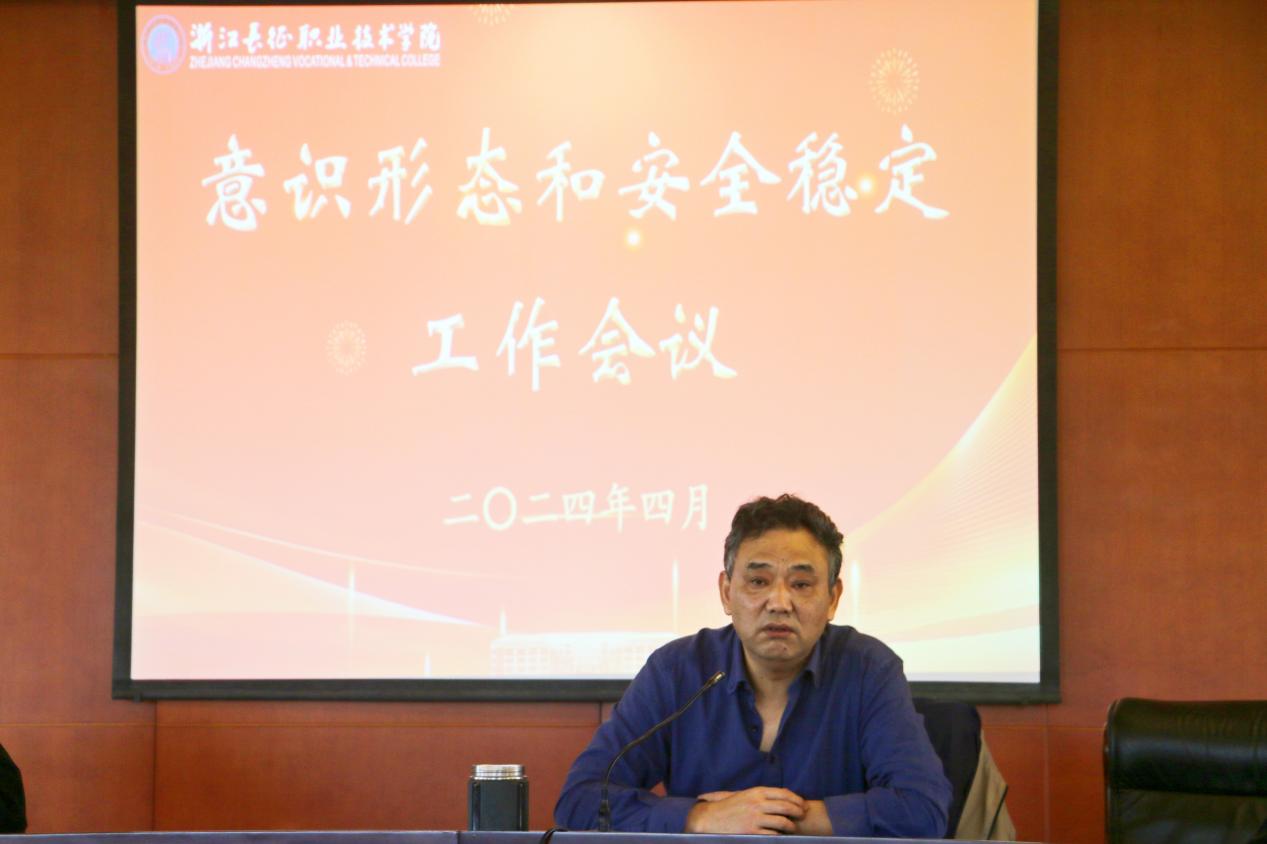 为认真贯彻落实上级主管部门关于意识形态和安全稳定工作的重要会议及文件精神,进一步统一思想、明确任务、强化责任,加强和改进学校意识形态和安全稳定工作,4月3日,学校在第一会议室召开2024年意识形态和安全稳定工作会议。学校党委副书记吴有恩出席会议,各二级学院书记、副书记,学工办主任、副主任,党委办公室、校团委、保卫处、教务处等相关部门负责人,学生处和保卫处全体成员参加了会议。会议由学生处处长章剑飞主持。