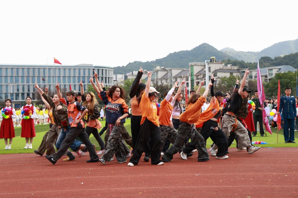 伴随着激昂的运动员进行曲,国旗护卫队迈着铿锵的步伐率先入场。各二级学院方阵队伍将专业特色融入入场式,彰显长征学子的青春本色。此次运动会开幕式,我校智能技术学院科创中心工业机器人团队带来了欢快灵动的机器狗舞狮表演,还特别邀请了小和山高校艺术联盟单位浙江外国语学院舞蹈队带来了动感的暖场表演。