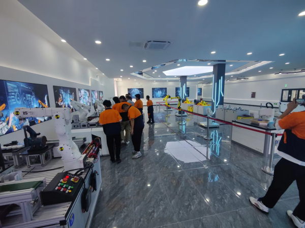 在龙盛工贸工作人员为大家详细介绍了企业的发展历程、整体概况、企业文化、未来发展趋势、员工待遇及用人要求,并带领产业学院师生一行参观了龙盛工贸科技感十足的磨抛机器人展示厅及装配车间,学生们实地零距离感受到了龙盛工贸企业的文化理念,切身感受到了企业的工作环境及岗位工作流程,从而激发了同学们的学习和就业热情,对培养学生爱专业、乐学习、勤练技能的学习意识有积极推动作用,为同学们今后的实习工作奠定良好的基础。