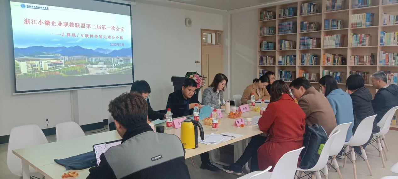 3月23日,浙江中小微企业职教联盟分会场(计算机/互联网类专业技术人才综合素质鉴定站)会议在学校图书馆305室顺利召开。学校教务处副处长吴少俊、计算机与信息技术学院(以下简称计信学院)计算机/互联网类专业技术人员综合素质评价考核标准起草团队成员、5位合作企业的联盟理事参加了此次会议。