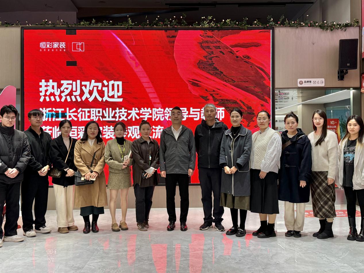为加强校企深度合作、推进产教融合。11月28日,副校长冯新红带队走访浙江恒彩家居装饰有限公司(以下简称:恒彩家装),开展“访企拓岗促进就业专项行动”。校企合作处处长吴少俊、建筑工程学院副院长杨琼、建筑装饰工程技术教研室、建筑室内设计教研室教师代表陪同走访调研。