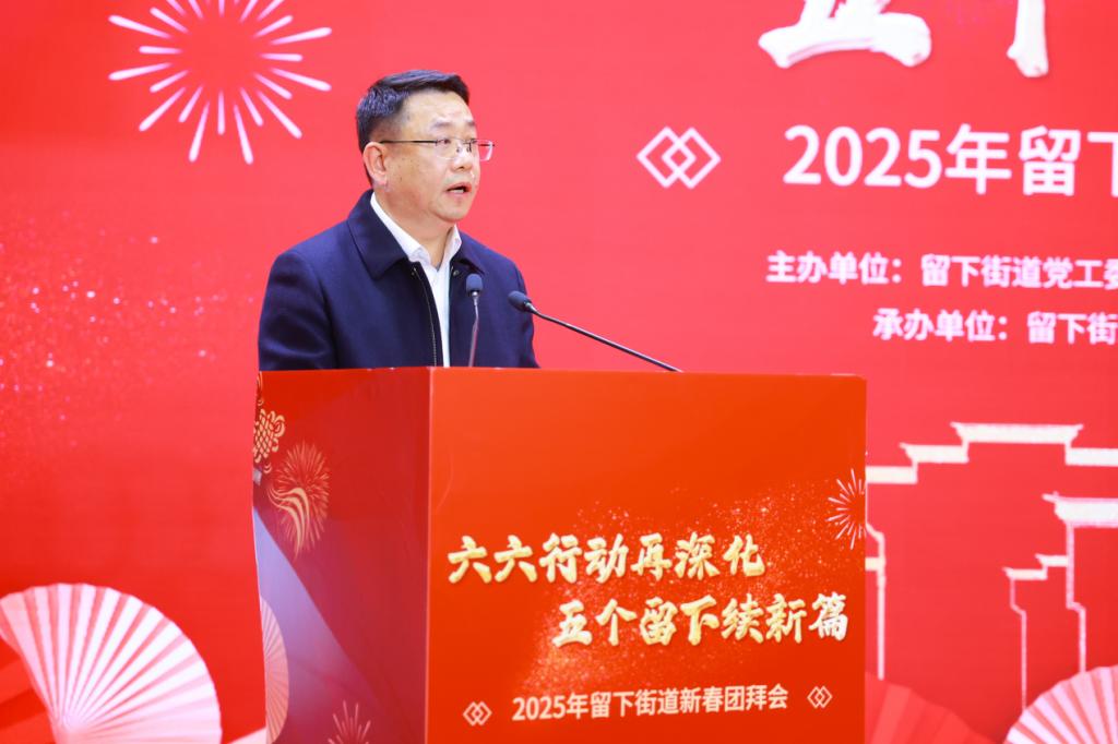 近日,由留下街道党工委、留下街道办事处、人大留下街道工委主办的“六六行动再深化,五个留下续新篇”2025年留下街道新春团拜会在石马社区党群服务中心举行。我校管理学院院长潘雅辉作为石马社区“科技村长”出席活动。