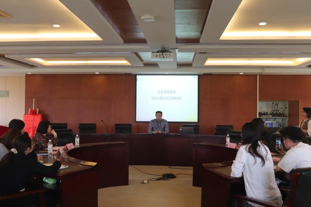 4月16日,商务与贸易学院“长征·创富港”新媒体营销项目揭牌暨实战营开班仪式在第一会议室隆重举行。创富港杭州分部运营总监魏金权、人事经理黄美舒、人事主管吴佳丽,商务与贸易学院院长王珍、党总支书记过芹芹、教师代表及16名实战营学员齐聚一堂,共同见证这一重要时刻。开班仪式由跨境电商教研室姜继红老师主持。