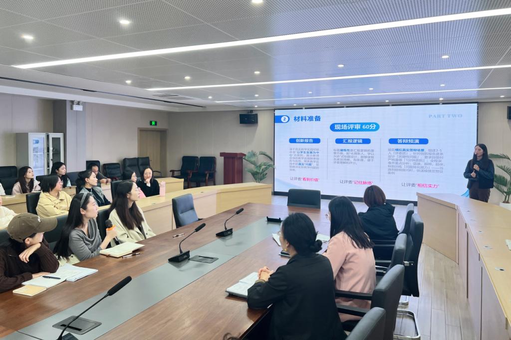 近日,人文与管理学院在第三会议室召开技能提升月系列活动——第五届长三角民办高校教师教学技能大赛分享会。人文与管理学院院长潘雅辉、党总支副书记丁慧瑛、全体教师参加活动。