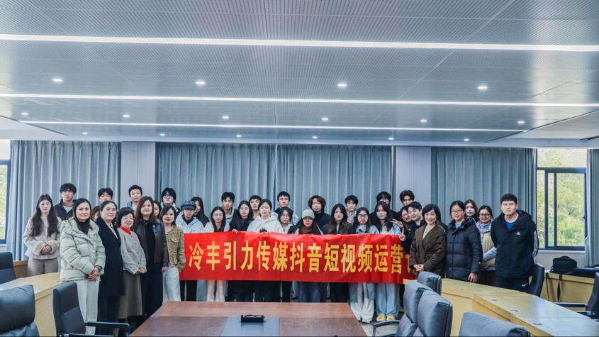 近日,商务与贸易学院与杭州冷丰引力传媒有限公司(以下简称:“冷丰传媒”)合作的抖音短视频运营实战营开班仪式顺利举行。冷丰传媒总经理吴丽江,学校副校长冯新红出席,商务与贸易学院院长王珍、党总支书记余泓、副院长陈露、党总支副书记高计龙及师生代表50余人参加仪式。