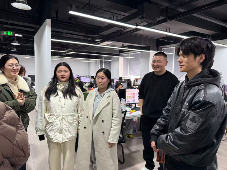 会前,陈露一行实地查看了实习生工作环境,细致询问同学们在岗位实践、技能提升及生活适应等方面的情况。她鼓励大家珍惜实践机会,将课堂知识与电商视觉营销设计等岗位实操紧密结合,不断提升职业核心能力。