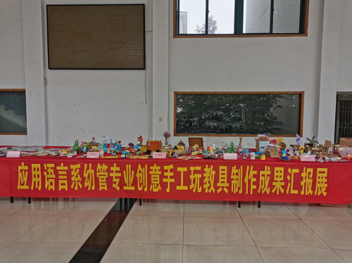 12月9日,我校应用语言系幼儿发展与健康管理专业在行政楼一楼大厅开展了“创意手工玩教具制作成果汇报展”,活动展出了19级和20级幼儿发展与健康管理专业八个班级的学生制作的共450件玩教具。