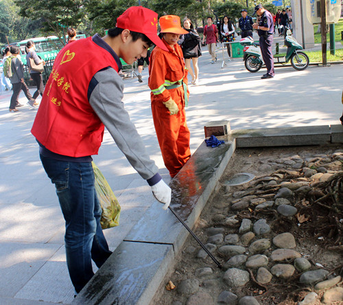 2015年10月11日上午8时,建工系在西湖开展以“服务进社会,爱心暖人心”为主题的志愿活动。我系派出数十位志愿者前往西湖风景区参加本次活动。